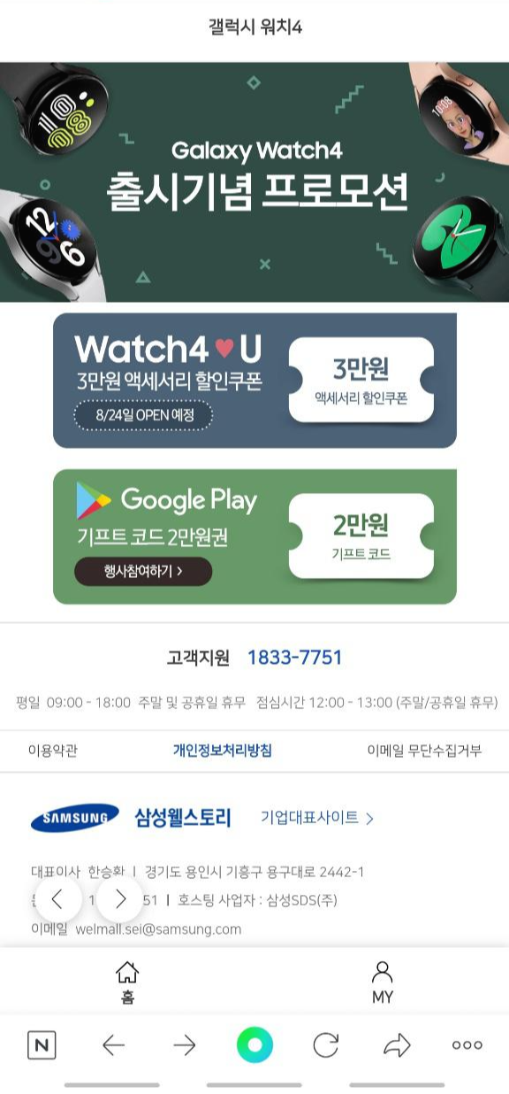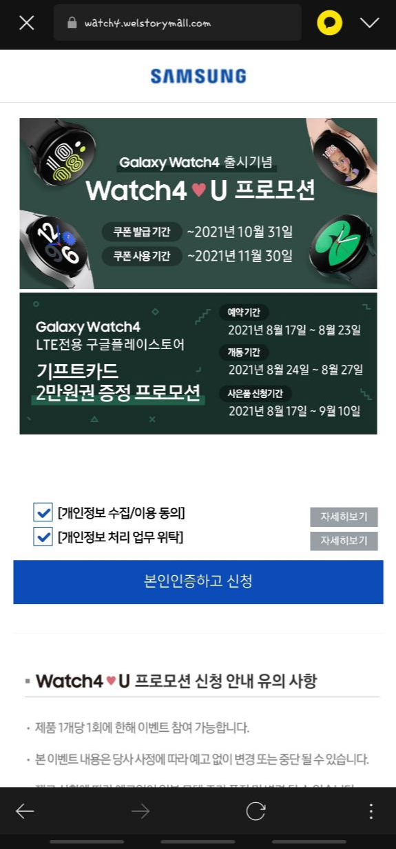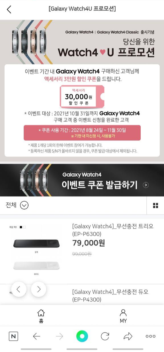 2021년 10월 31일 까지 갤럭시 워치4 구매 고객들을 대상으로 한 이벤트 입니다.